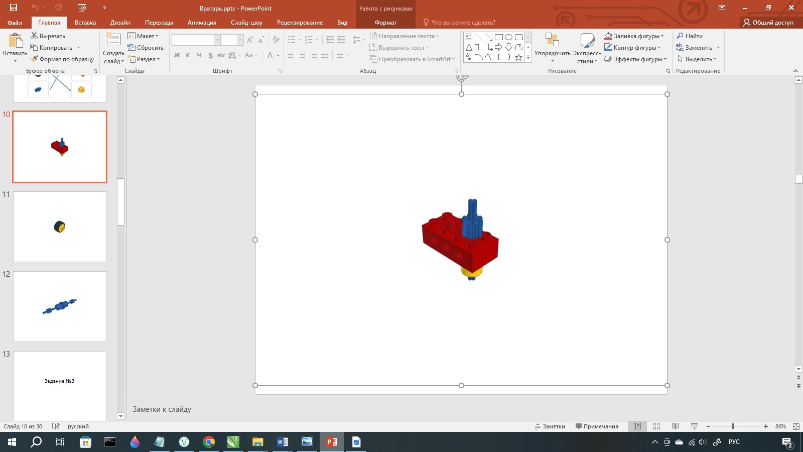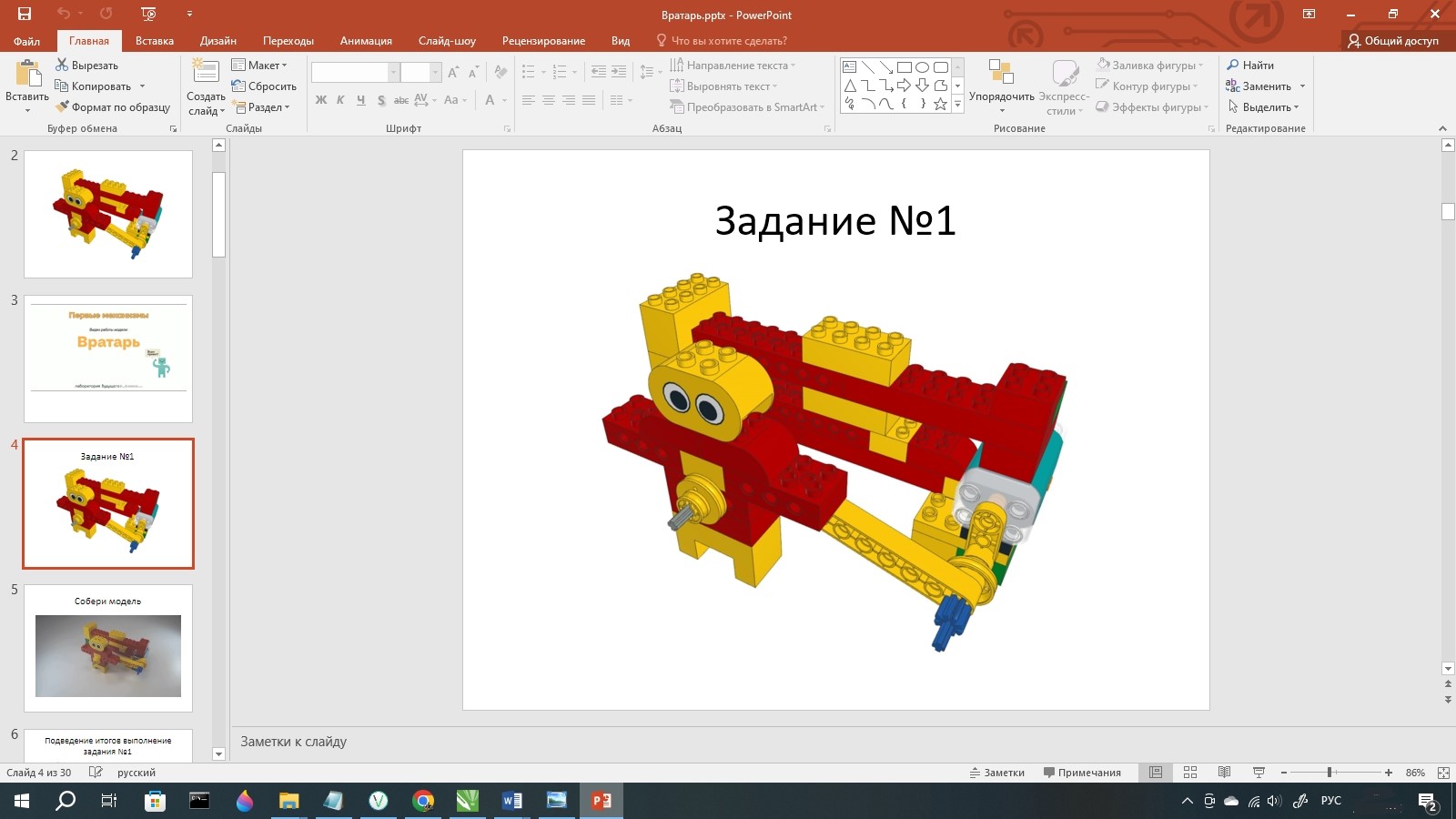 Занятие начинается стандартно - с озвучивания темы занятия и презентации модели для самостоятельной сборки.