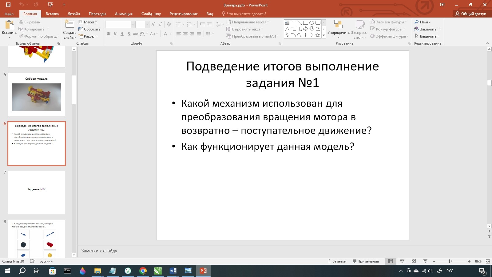 Собрав модель, педагогу с ребятами необходимо провести подведение итогов по заданию №1.
