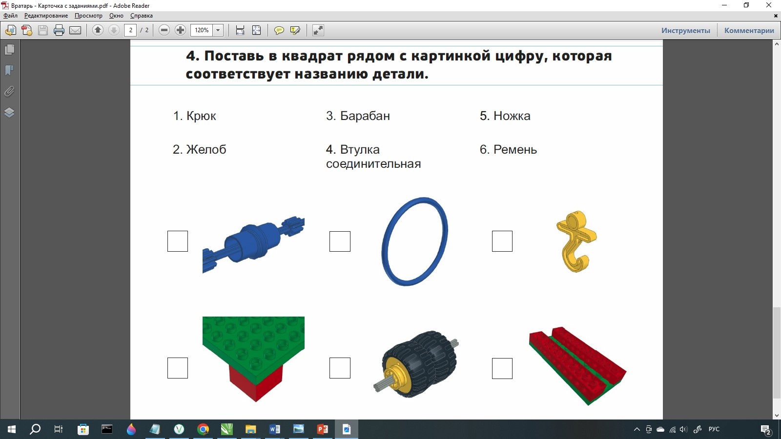 Но здесь есть нюанс – детали в карточке не относятся к модели. Т.е. в Полусамостоятельном конструировании, мы так же расширяем знания в области названия деталей и механизмов.