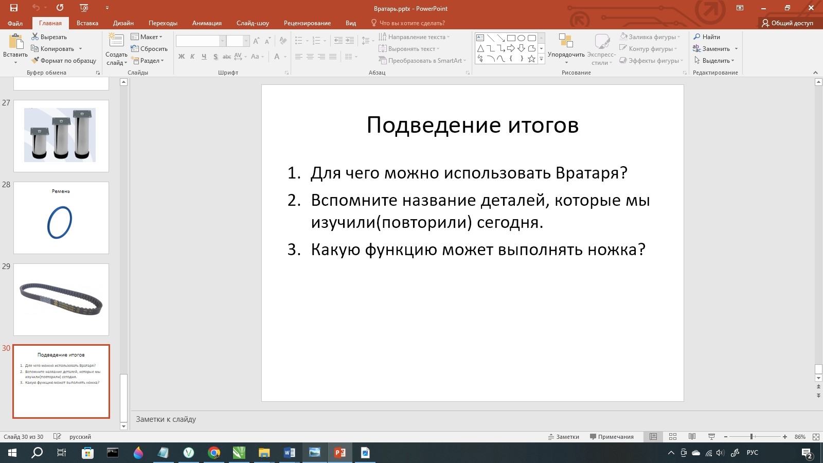 И одним из способов закрепления информации может служит Полусамостоятельое конструирование. В занятии «Вратарь», ребятам как раз необходимо самостоятельно собрать модель «Вратаря», в котором также используется кривошипно – шатунный механизм.